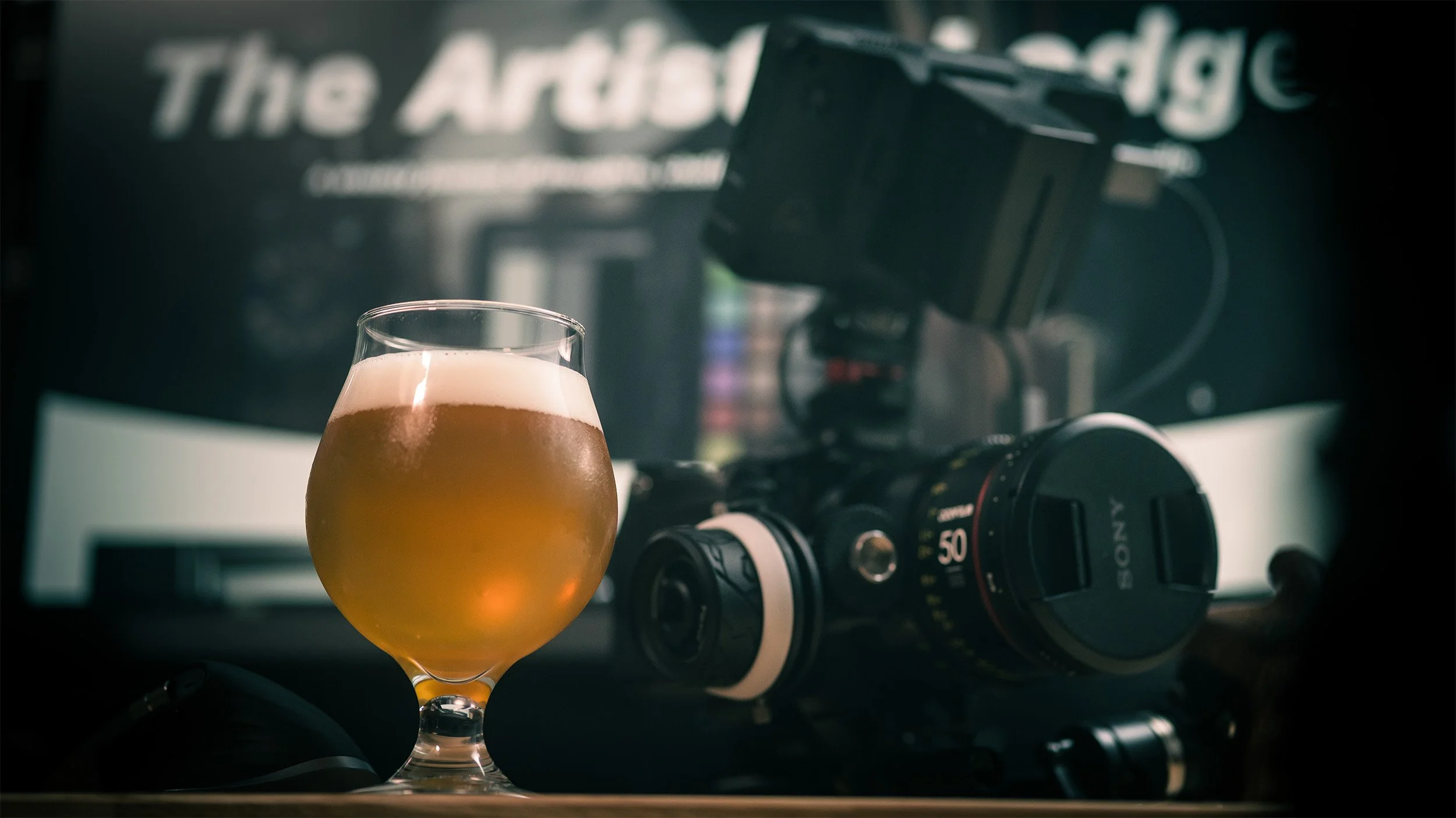 July 2025 – Main studio, late night. The Sony Alpha 7siii was rigged and ready to capture the quiet ritual of making art after hours. A warm beer sat nearby, doing its part—not in flavor, but in presence. — © Michael Warth